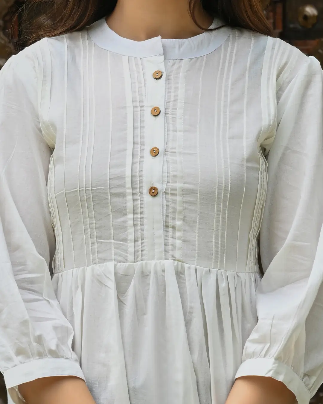 White Solid Pintucks Top