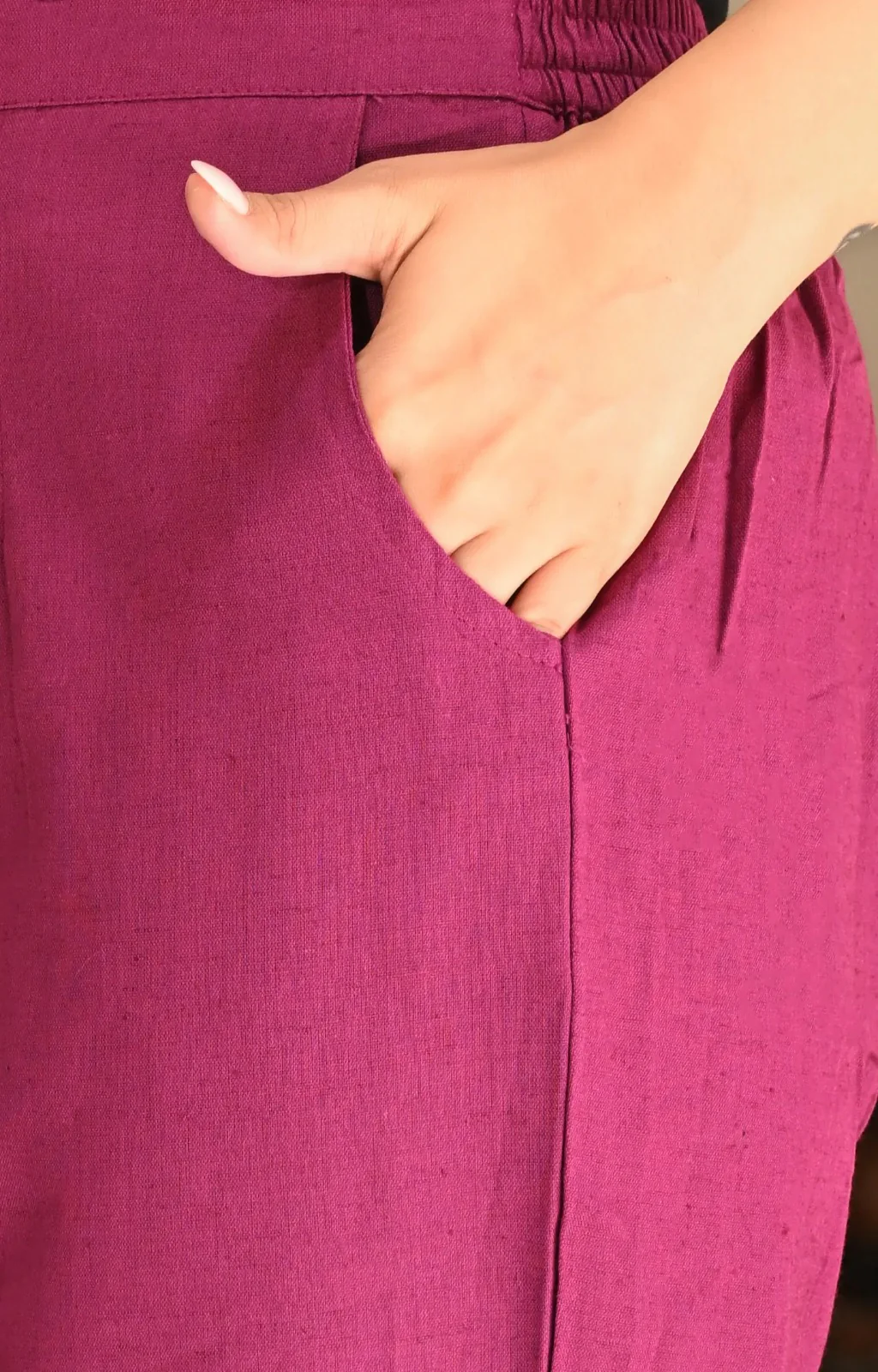 WINE SOLID AIRY LINEN PANTS